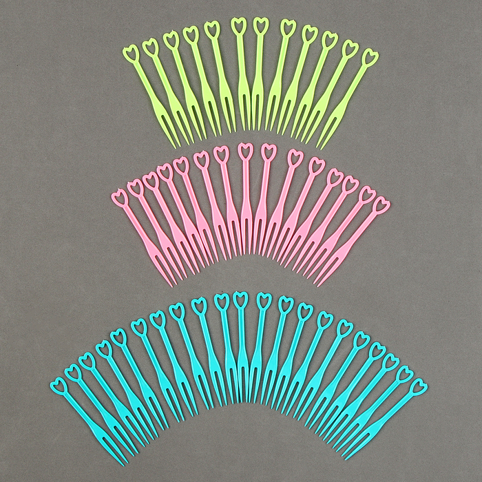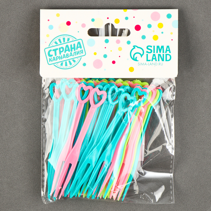 - Набор включает 50 шпажек длиной 10 см, выполненные из прочного пластика с декоративными элементами в виде сердечек.