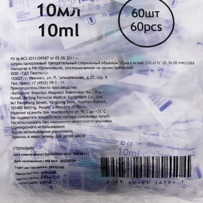 -Объем шприца 10 мл