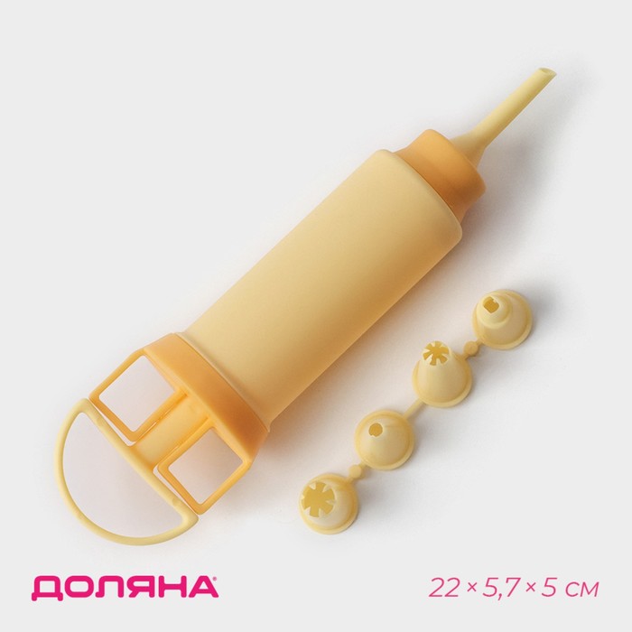 Шприц кондитерский Доляна «Ваниль», 5 насадок, 22×5,7×5 см станет вашей "волшебной палочкой" при создании кондитерских шедевров. Удобный инструмент позволит в точности воплотить идею и поразить воображение гостей чудесными украшениями даже самого обычного блюда.