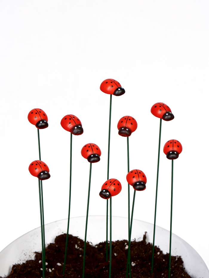 - Миниатюрный размер: общая высота каждого штекера составляет 25 см. Фигурка божьей коровки размером 2,5 см выглядит естественно среди листвы — создаёт эффект живых насекомых в саду.