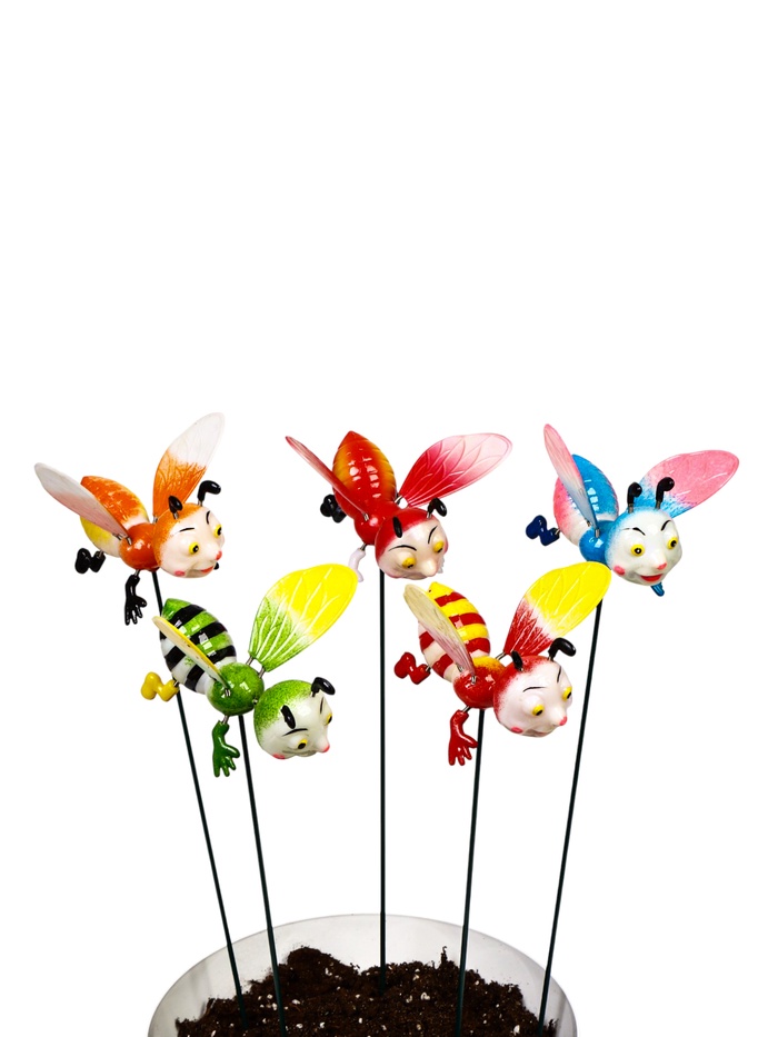 Сад в движении: пчёлка добавляет цветнику динамики. Она создаёт иллюзию, что над клумбой вот-вот зажужжит труженица сада. Такой декор напоминает о природном цикле опыления — даже когда растения ещё не цветут.