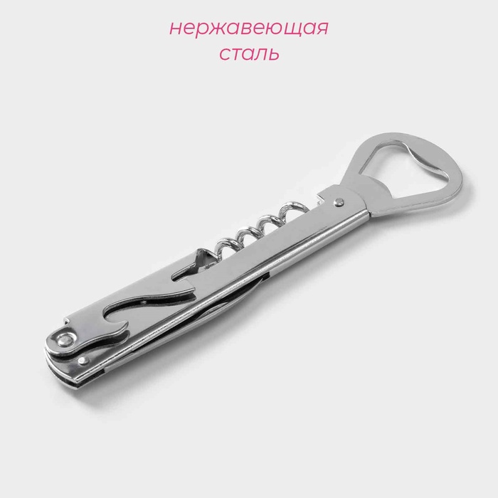 Универсальная открывашка - в ней есть всё, что может понадобиться в походных условиях, командировке: консервный нож, штопор, открывашка для бутылок и банок. С ней вы будете чувствовать себя комфортно и вдали от цивилизации!