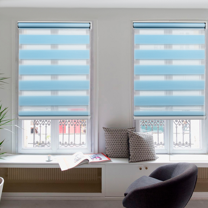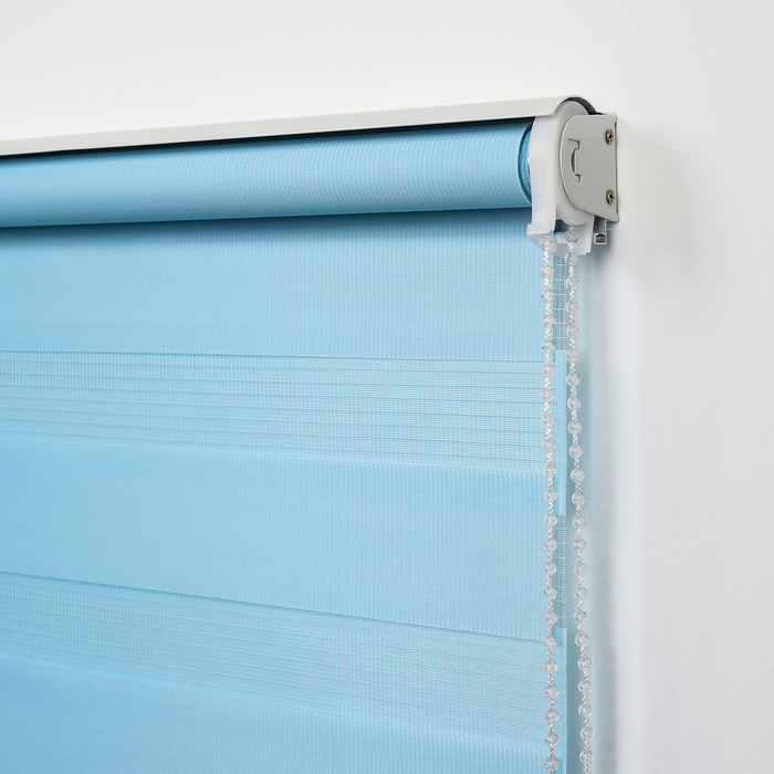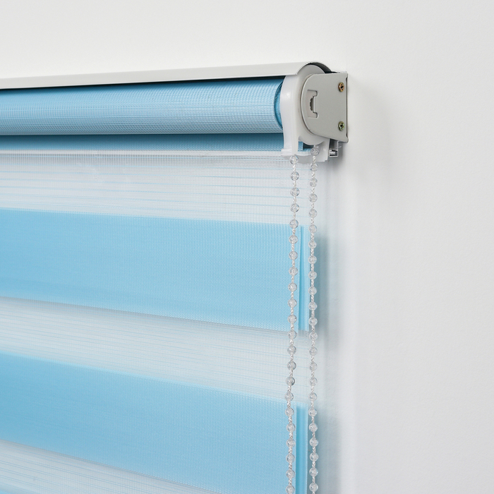 С рулонной шторой «день — ночь» вы можете выбирать уровень освещения в соответствии со своим желанием. Оригинальная конструкция может занимать промежуточное положение между полностью открытым и закрытым состоянием. При сворачивании полоски смещаются относительно друг друга, и уровень светопропускания изменяется.