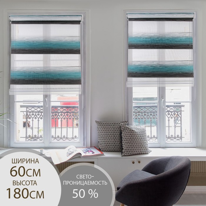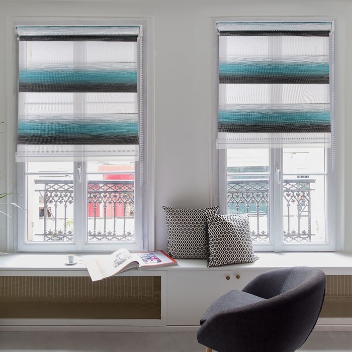 С рулонной шторой «день — ночь» вы можете выбирать уровень освещения в соответствии со своим желанием. Оригинальная конструкция может занимать промежуточное положение между полностью открытым и закрытым состоянием. При сворачивании полоски смещаются относительно друг друга, и уровень светопропускания изменяется.