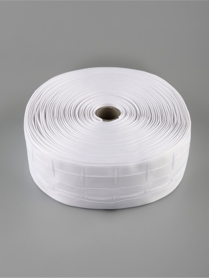 Изготовленная из прочного полиэстера, лента обладает матовой текстурой, которая придаёт ей благородный вид и минимизирует блики света. Белый цвет позволяет гармонично сочетаться с любым дизайном помещения, а длина 50±1 м обеспечивает достаточный запас материала для работы с различными типами штор. Два шнура обеспечивают точную регулировку складок, сохраняя при этом фиксированную форму сборки.