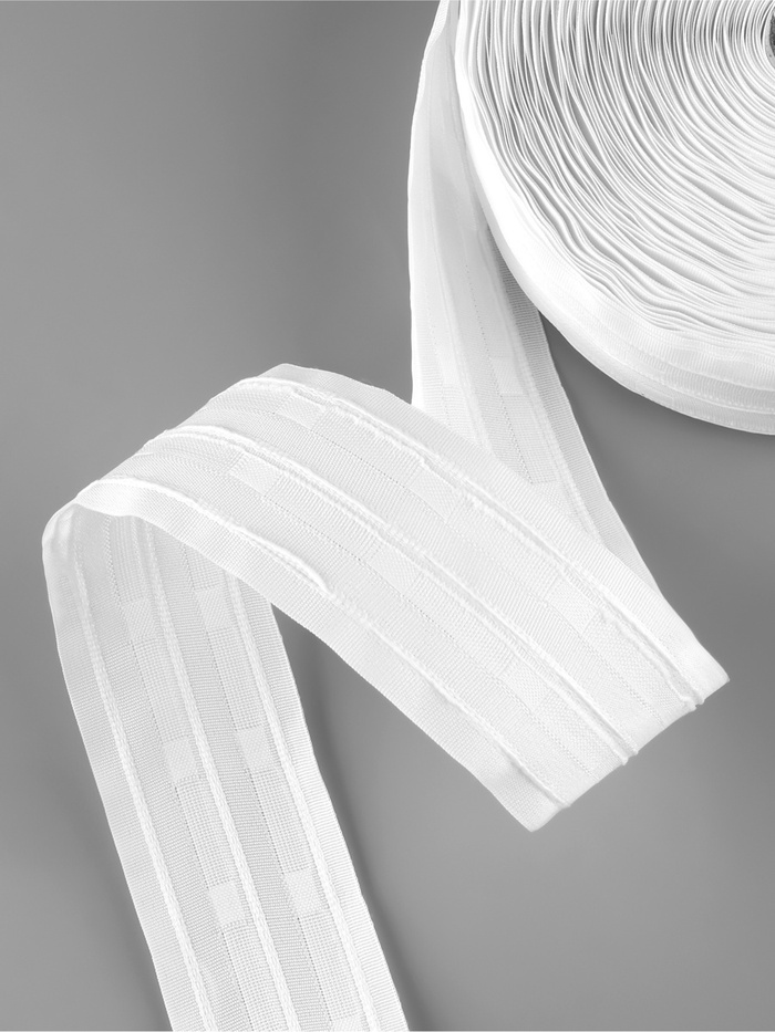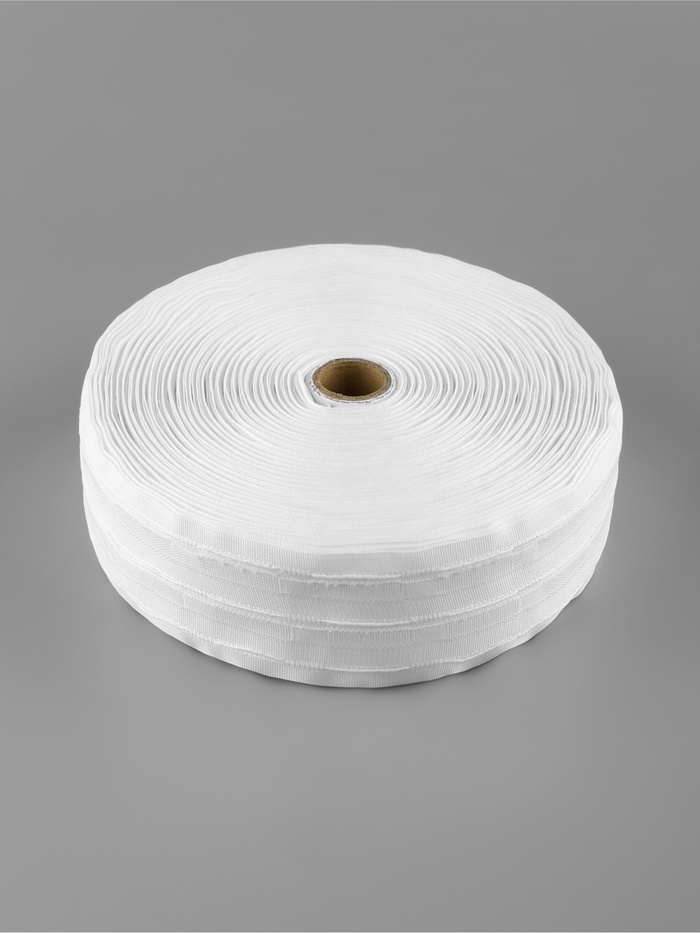 Изготовленная из прочного полиэстера, лента обладает матовой текстурой, которая придаёт ей современный и благородный вид. Белый цвет делает её универсальным выбором для любого интерьера, а длина 50±1 м обеспечивает достаточный запас материала для работы с различными типами штор. Три шнура гарантируют максимальную точность регулировки складок, позволяя создавать идеально ровные и красивые формы.