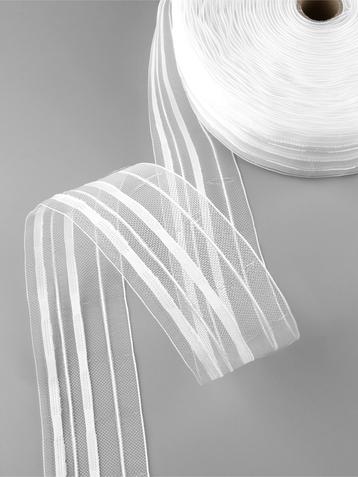 Изготовленная из высококачественной органзы, лента обладает прозрачностью и воздушностью, которые делают её идеальным выбором для создания лёгких и изысканных интерьеров. Белый цвет позволяет гармонично сочетаться с любым дизайном помещения, а длина 50±1 м обеспечивает достаточный запас материала для работы с различными типами штор. Два шнура обеспечивают точную регулировку складок, сохраняя при этом фиксированную форму сборки.