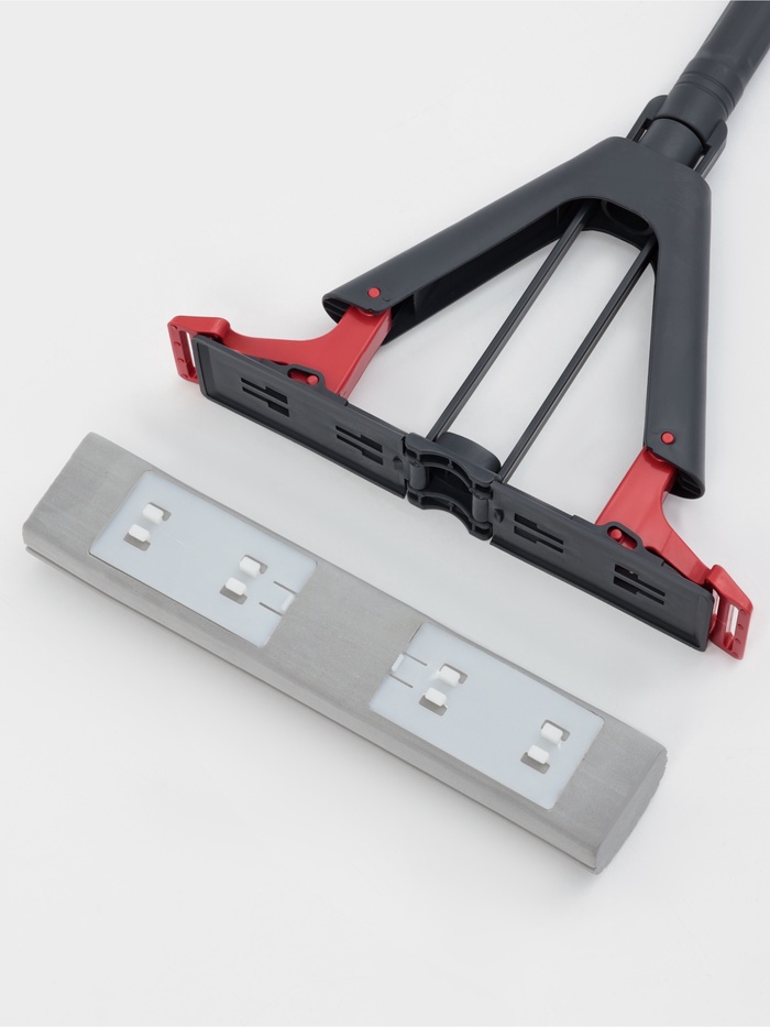 - Складная конструкция насадки: губка сгибается пополам для механического отжима через специальный рычаг.