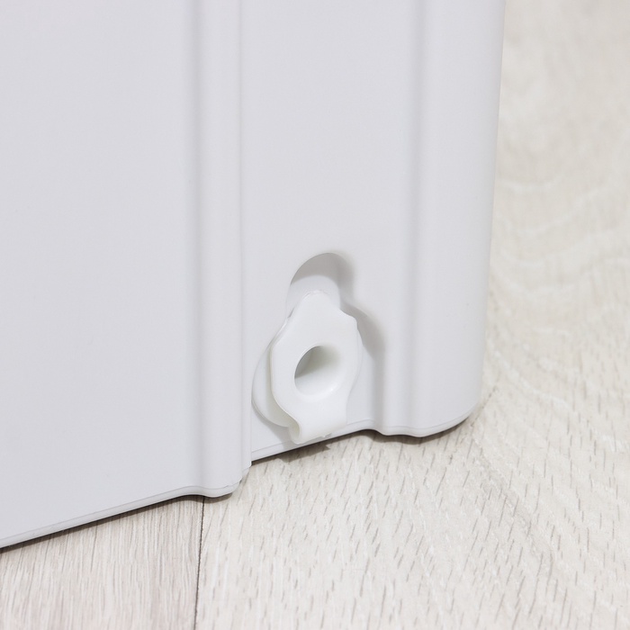 Ведро с двумя отсеками. Отсек для полоскания с щёточками, который при минимальных усилиях позволяет быстро и эффективно очистить насадку. Второй отсек с роликом для вертикального отжима.