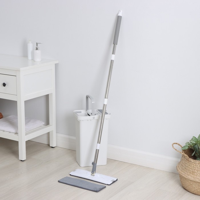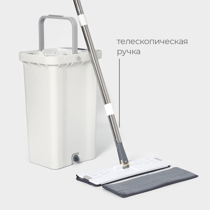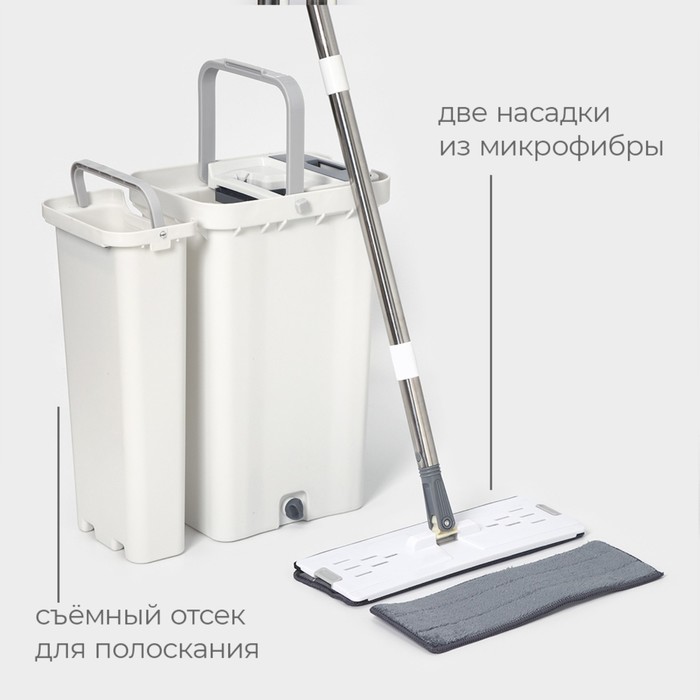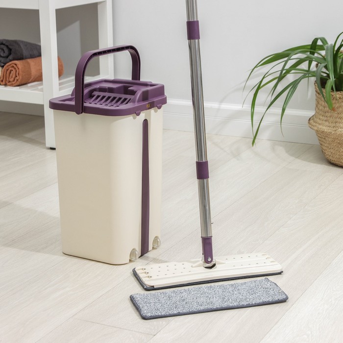 - Легкость и прочность: швабра и ведро выполнены из качественного пластика, нержавеющей стали и микрофибры, что обеспечивает долгий срок службы.