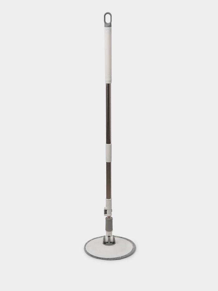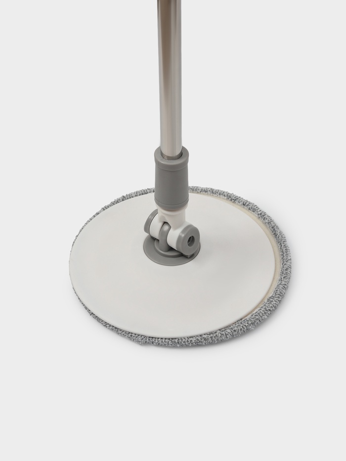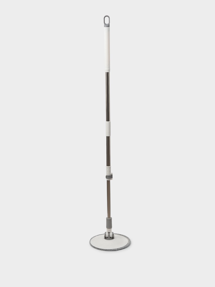 Подвижная часть ручки швабры легко опускается и обеспечивает вращение насадки. Вы без труда можете контролировать уровень влажности моющей части за счет количества вращений.