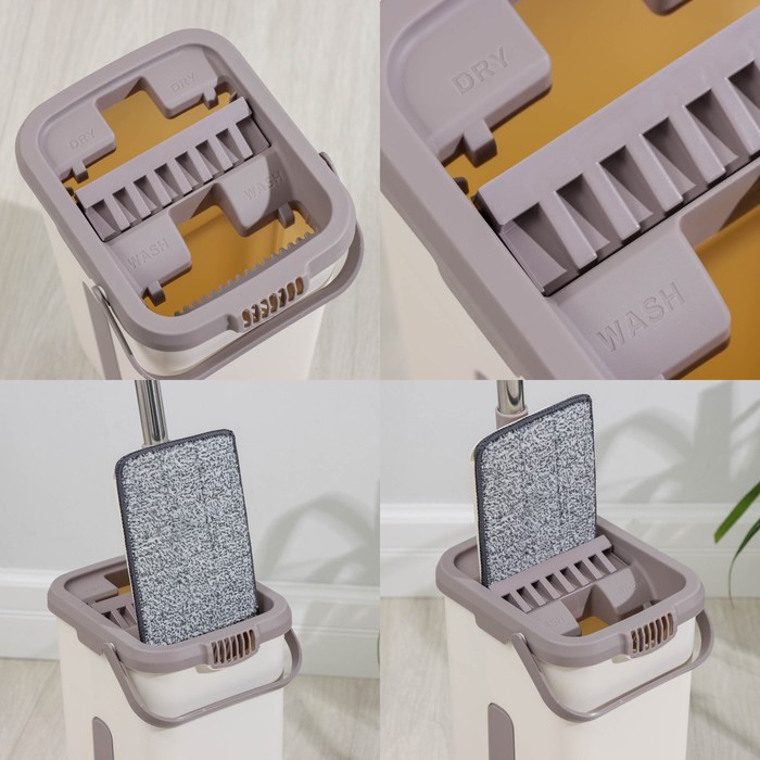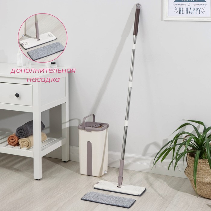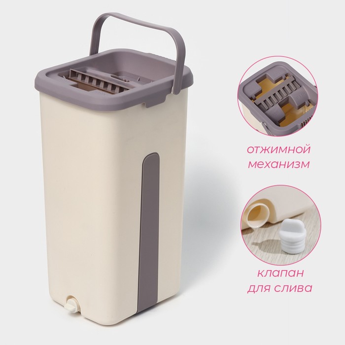 Швабра с отжимом и ведром Доляна, ведро с 2 отсеками 21×18×37, швабра 32×12×128 см, отсек 4 л, дополнительная насадка из микрофибры