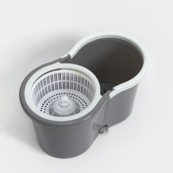 Швабра с отжимом и ведром на колёсиках с пластиковой центрифугой Доляна, 14 л, швабра, запасная насадка из микрофибры, цвет МИКС