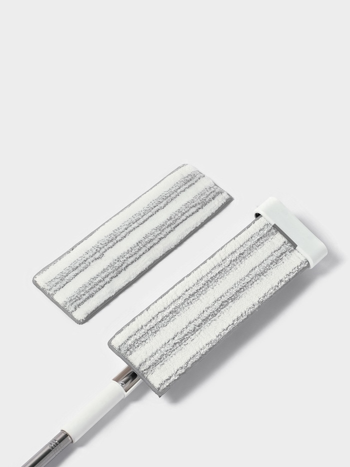 - Плоская насадка из микрофибры легко очищает труднодоступные участки и эффективно собирает грязь.