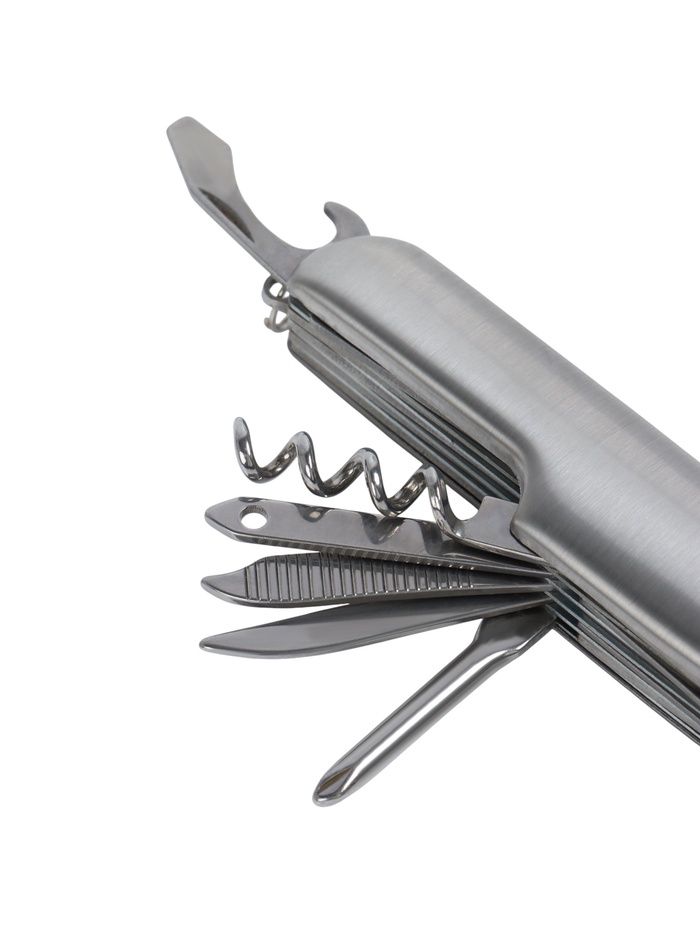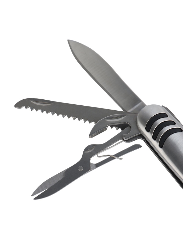 Каждый инструмент легко раскладывается и фиксируется в рабочем положении. Подходит для выполнения широкого круга задач: от приготовления пищи и вскрытия консервов до мелкого ремонта и работы с деревом.