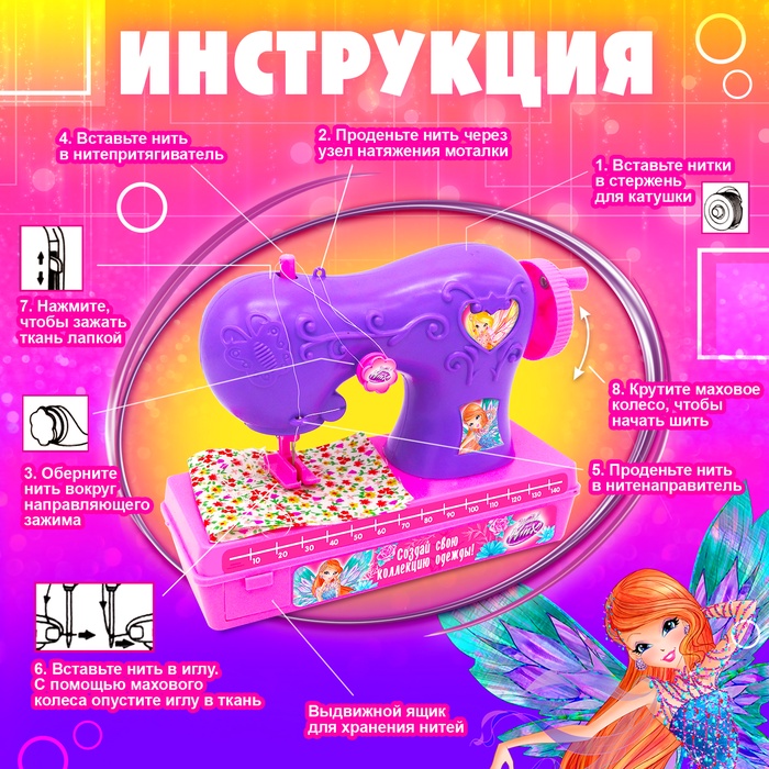 Первые шаги в мире моды и творчества! Детская швейная машинка «Волшебная нить» — это настоящий инструмент для развития креативности. Машина с дизайном WINX помогает девочке почувствовать себя юным модельером и создать свой первый шедевр.