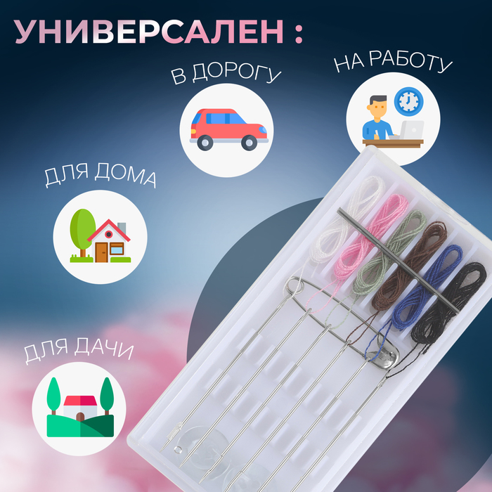 Швейный набор дорожный, 15 предметов, в пластиковом футляре, 7,5 × 3,5 см