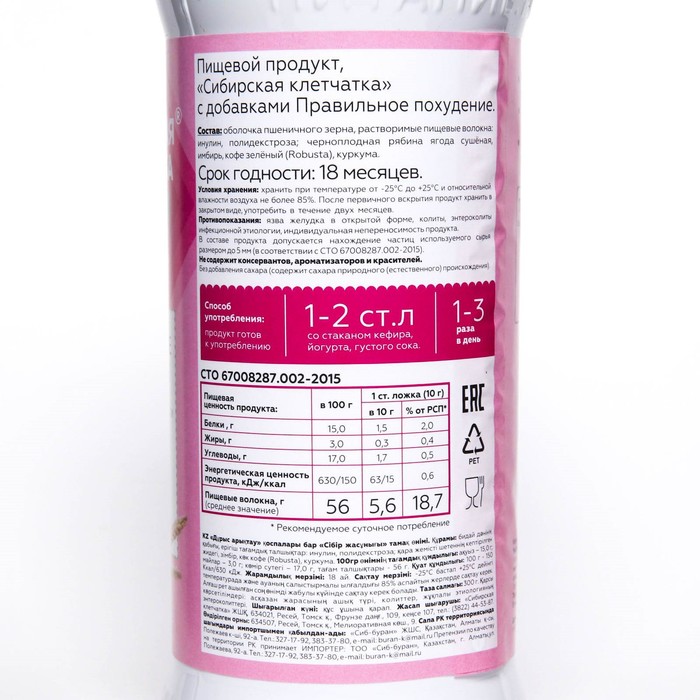 Впервые Сибирская клетчатка обогащена пребиотиками-растворимой клетчаткой необходимой для жизнедеятельности полезной микрофлоры кишечника.