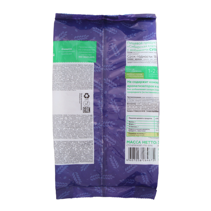 Ягодно-злаковый микс Сибирская клетчатка Суперчерника восстанавливает кишечную микрофлору, повышает иммунитет, нормализует обмен веществ.