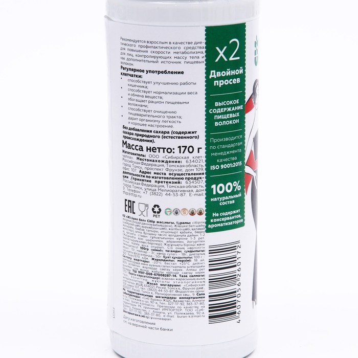 Способ применения: клетчатка готова к употреблению, не требует заваривания: 2 ст. ложки клетчатки на 250 мл воды комнатной температуры или кефира/йогурта/других густых жидкостей. Настоять 1 минуту. Выпивать за 10-15 минут до еды 1-3 раза в день.