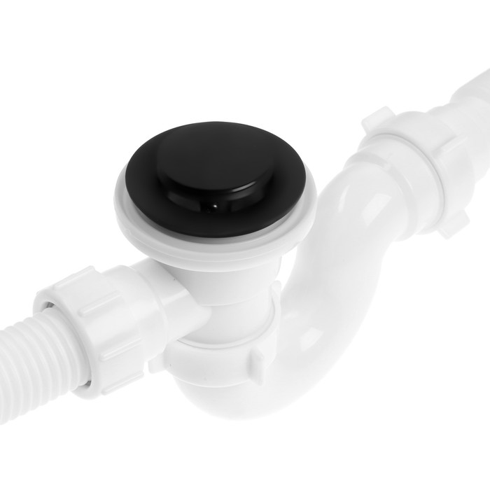 Сифон сливной АНИ пласт EC155BL для ванны черный с выпуском "клик-клак" и переливом.