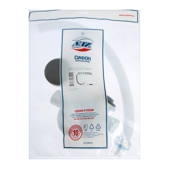 Комплектация: сифон сливной с переливом и выпуском "клик-клак", гофротруба 40х50 мм, упаковка.