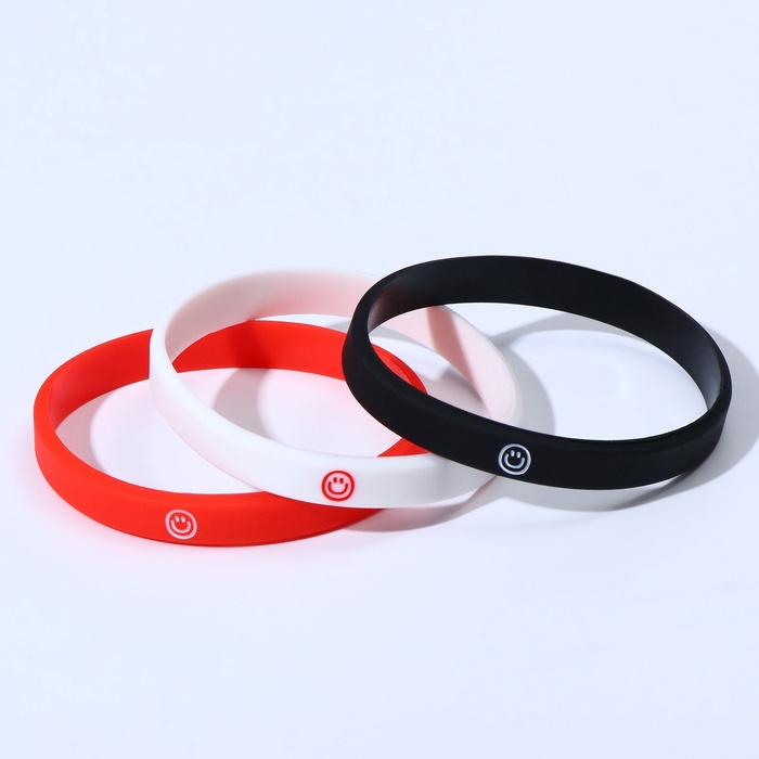 Набор из трех силиконовых браслетов – это яркое и веселое украшение, состоящее из чёрного, белого и красного цветов с забавным рисунком смайлика. Каждый браслет тянется и подходит для любой руки, обеспечивая комфортное ношение с диаметром 6 см. Эти яркие аксессуары легко комбинируются между собой, добавляя радостные акценты в ваш повседневный стиль.
