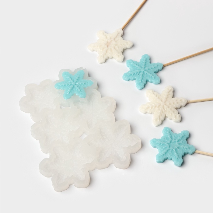 Силиконовый молд для леденцов и шоколада «Снежинки», 17×10×0,8 см, d=5 см, d=4,5 см, цвет прозрачный
