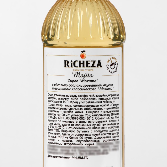 Сироп «Мохито» от РИЧЕЗА открывает линейку уже готовых напитков, а не просто сиропов. Достаточно просто добавить к сиропу прохладной газированной воды в соотношении 1:6 и получится великолепный классический «Мохито»! Добавление рома сделает коктейль алкогольным. В качестве сиропа может быть добавлен к мороженому, холодному чаю, фруктовым коктейлям и смузи для придания мягкого освежающего вкуса