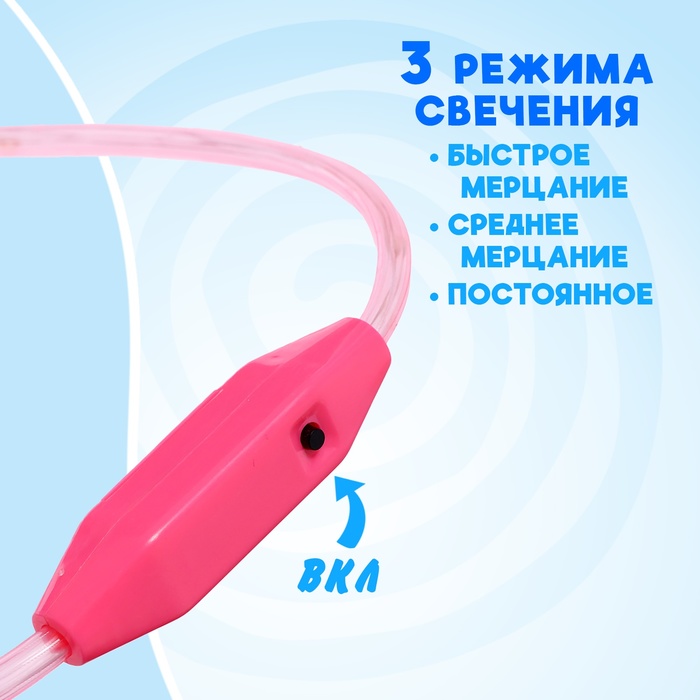 - Яркая подсветка: скакалка оснащена тремя режимами свечения: быстрое мигание, медленное мигание и постоянный свет. Каждый режим создаёт уникальную атмосферу, делая занятия весёлыми и увлекательными.