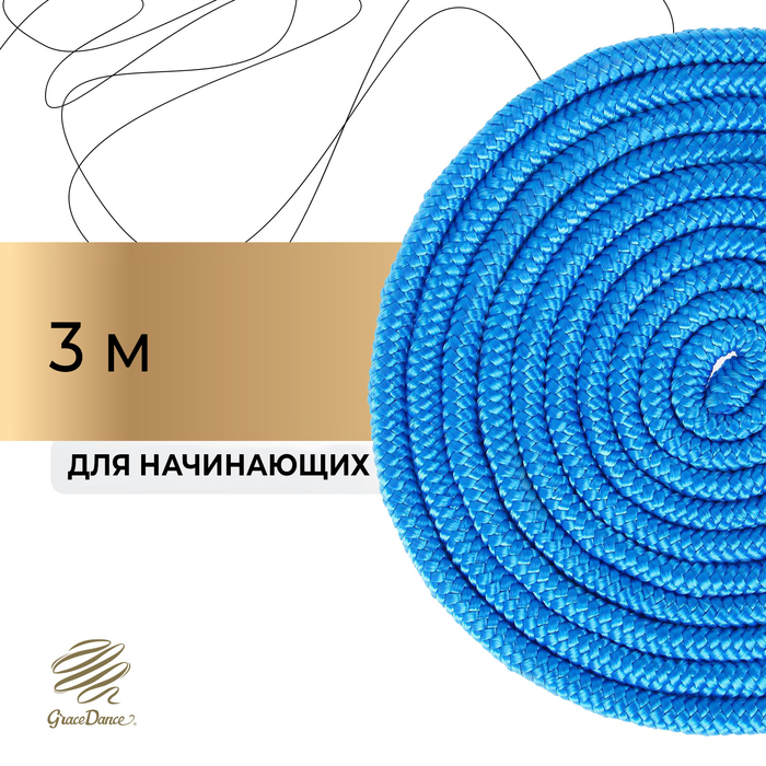 Скакалка предназначена для тренировки юной гимнастки. Яркий цвет инвентаря дополнит образ спортсменки.