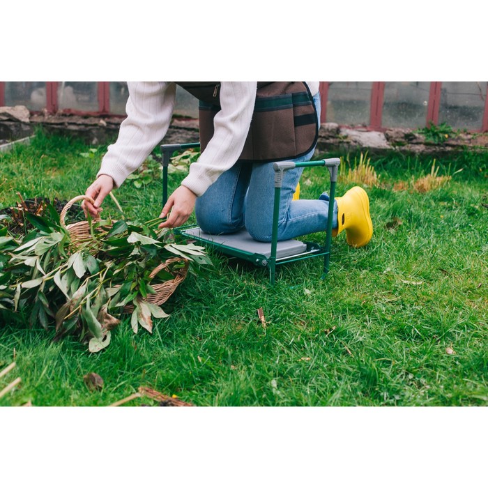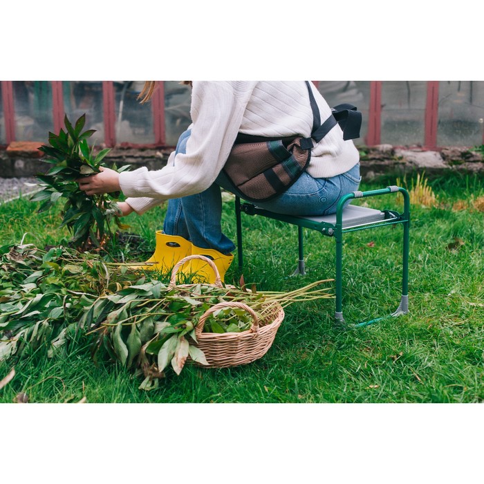 Складная скамья пригодится для различных работ на садовом участке и отдыха на природе. Вы не будете сидеть в неудобном положении, когда пропалываете грядки. Скамью можно использовать в качестве подставки для цветов, расположив растения каскадом.