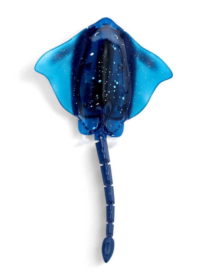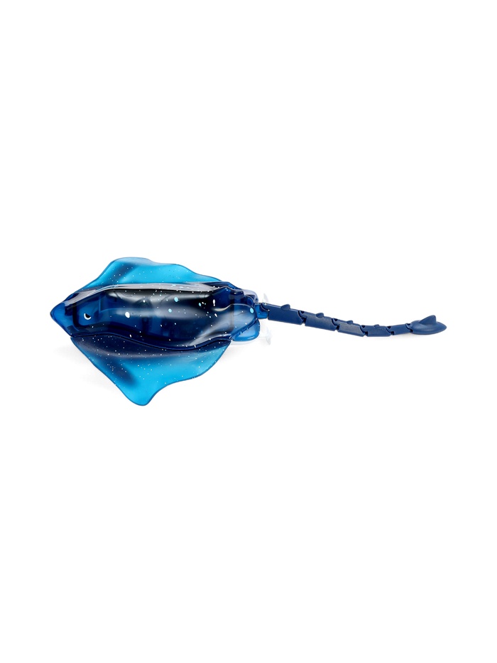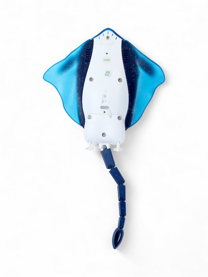 - Реалистичное движение: игрушка плавает вперёд и назад, выполняет повороты влево и вправо. Двойной пропеллер обеспечивает плавный ход и маневренность. Скат двигается в толще воды, создавая полную иллюзию живого существа.
