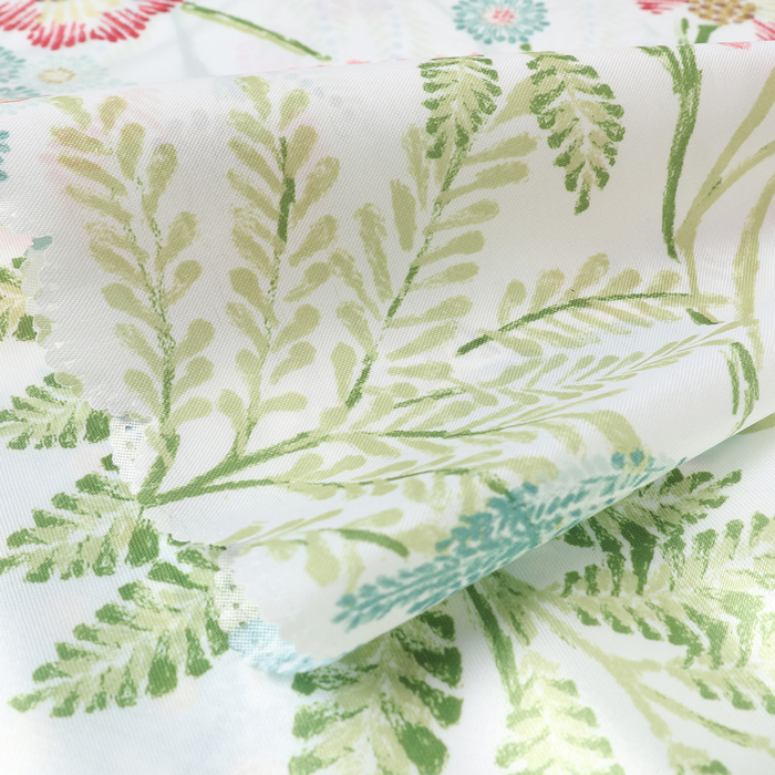Эта скатерть с летним цветочным принтом создаёт на столе ощущение свежести и лёгкости. Прямоугольная форма размером 145x110 см подходит для большинства обеденных и праздничных столов. Гладкая ткань из полиэстера приятна на ощупь и долго сохраняет яркость красок.