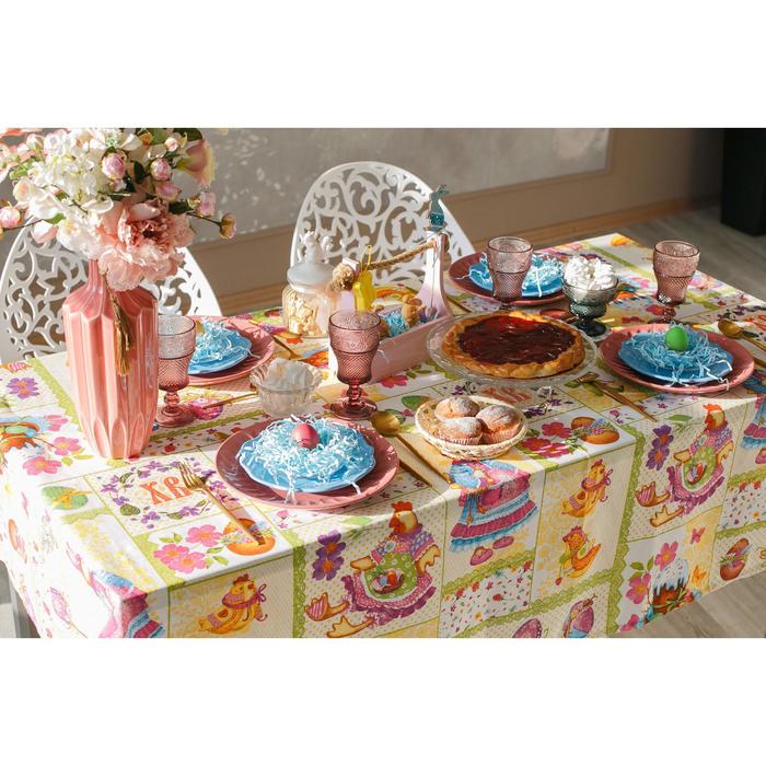 Скатерть «Светлая Пасха» торговой марки «Доляна» станет прекрасным подарком для себя и близких. Над оригинальным дизайном работала команда профессионалов.