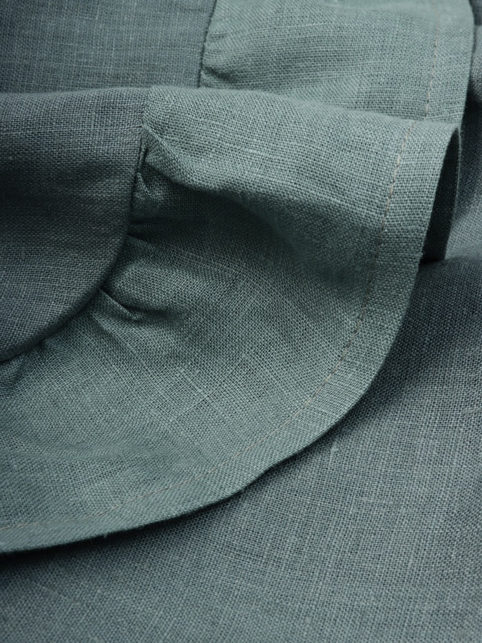 Льняная скатерть «Этель» — лёгкий акцент для повседневного стола. Зелёный оттенок добавляет интерьеру мягкости без излишней яркости, а прямоугольный формат 150×116 см подходит для стандартного обеденного стола. Рюши по краю создают объём без дополнительного декора.