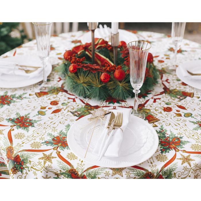 Скатерть новогодняя «Этель Новогодние игрушки» d=160 см /-3 см с ГМВО, хл100%