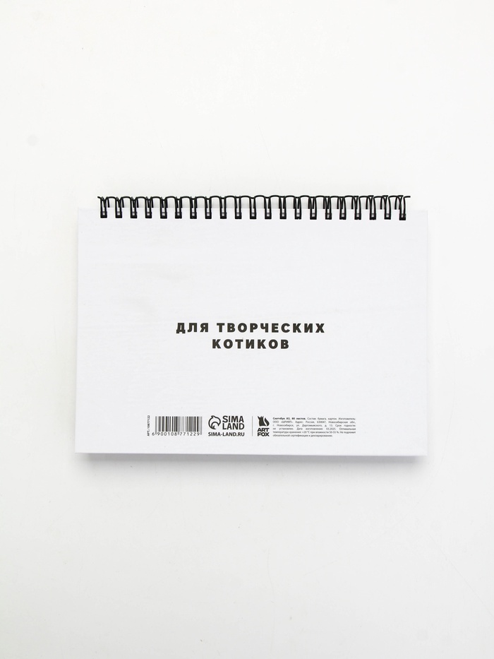 Скетчбук в твердой обложке на гребне А5 80 л 100 г/м "Котик"