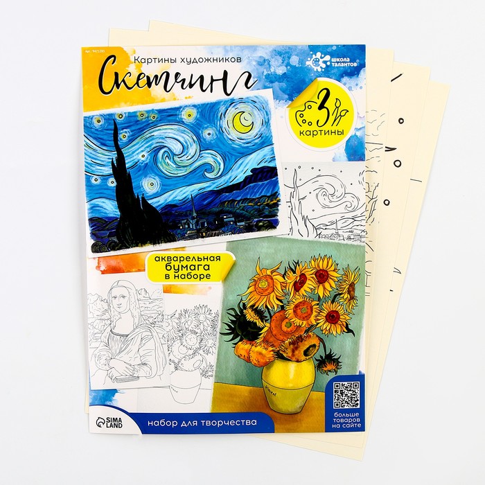 Скетчинг на акварельной бумаге «Картины художников» — отличная находка для творческих натур. Данный скетч станет идеальным инструментом для тренировки навыка рисования акварелью и для укрепления навыков в творчестве.
