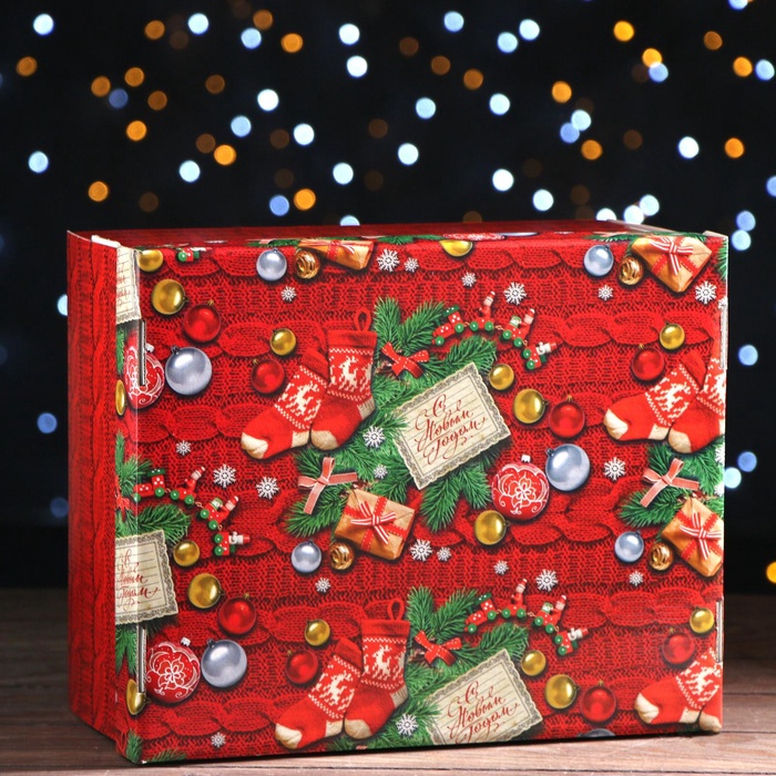 Новый год - время дарить и получать подарки. Подарочная коробка с новогодними дизайнами поможет создать праздничное настроение получателю, а так же легко перенести содержимое, не боясь его повредить, поцарапать или помять.