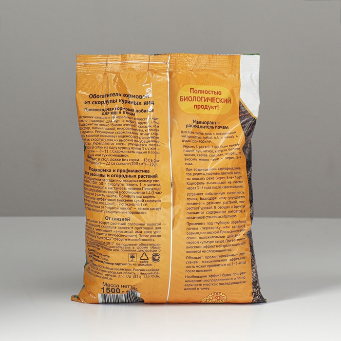 Регулярное скармливание птице скорлупы молотой повышает яйценоскость, формирует крепкую скорлупу яиц, их высокие инкубационные свойства. Укрепляются кости, улучшается состояние пера.