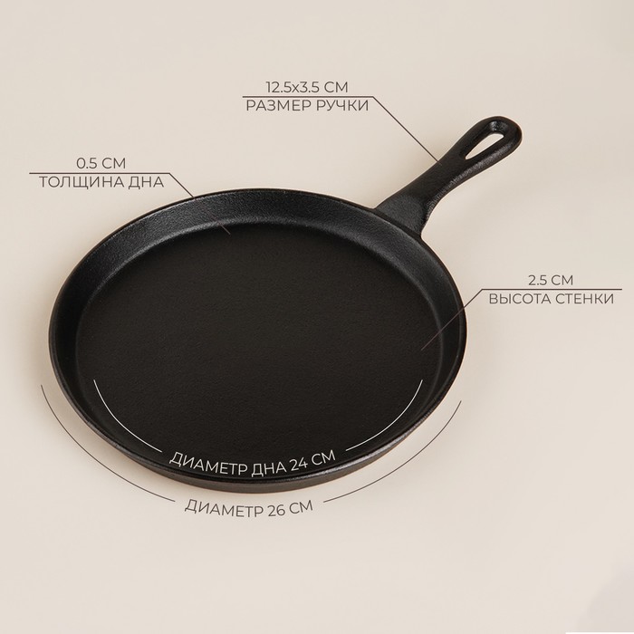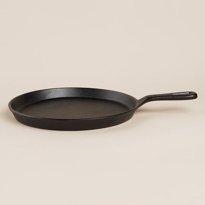 - Равномерное распределение тепла: благодаря толстым стенкам и дну, тепло распределяется равномерно, обеспечивая одинаковый нагрев и золотистую корочку на блинах.