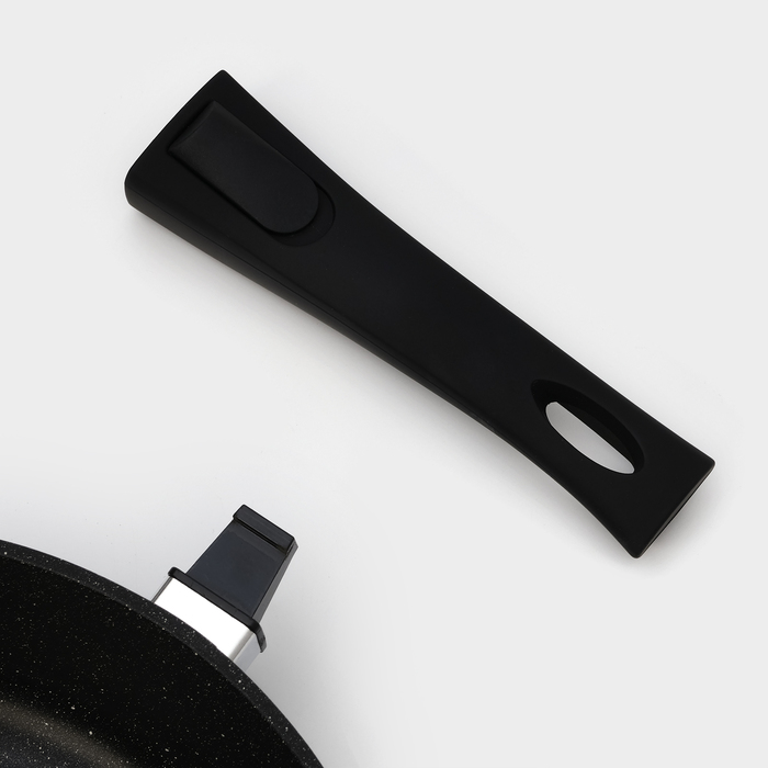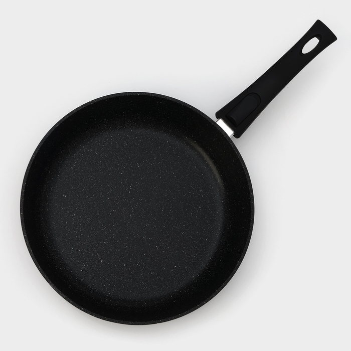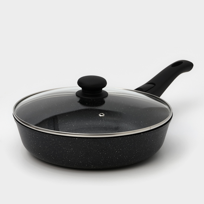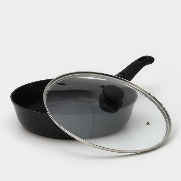 Сковорода Доляна «Элит», d=28 см, пластиковая ручка, стеклянная крышка, антипригарное покрытие, цвет чёрный