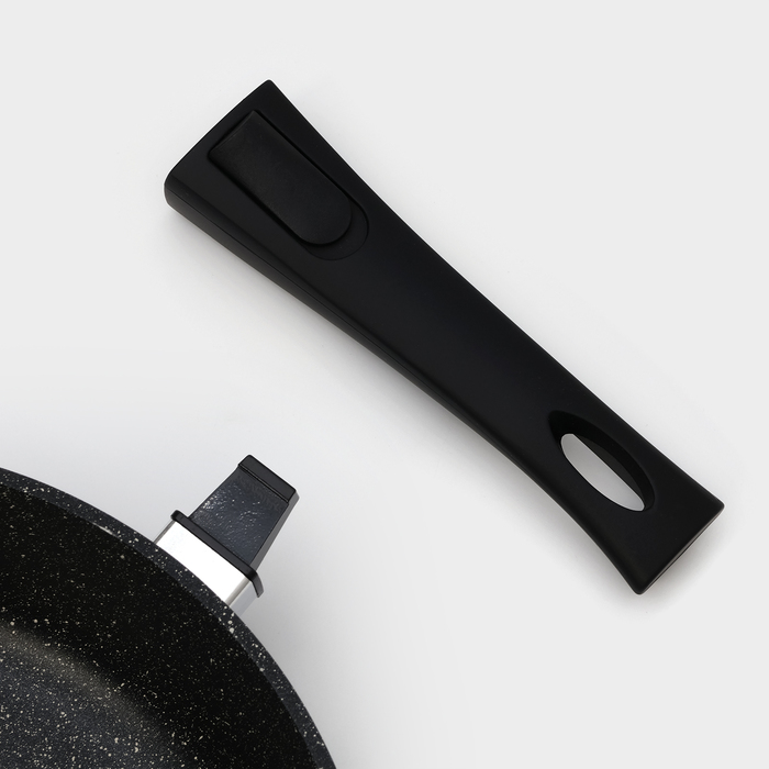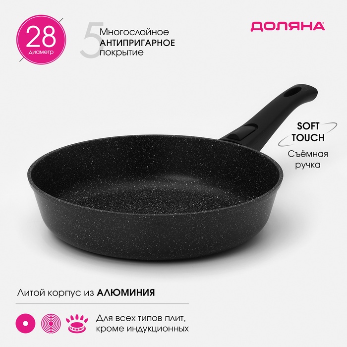 Сковорода Доляна «Элит», d=28 см, съёмная ручка, антипригарное покрытие, алюминий, чёрная