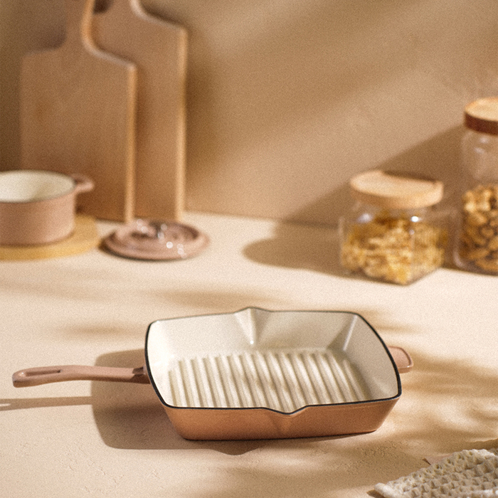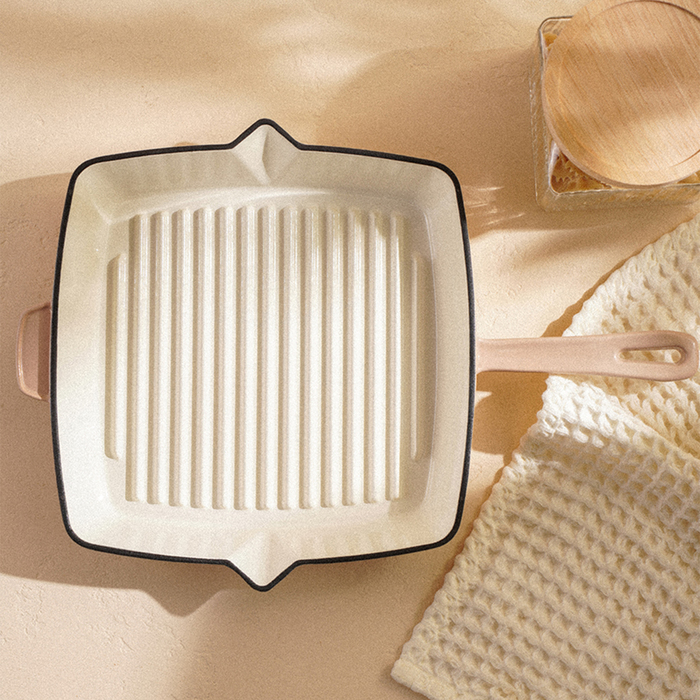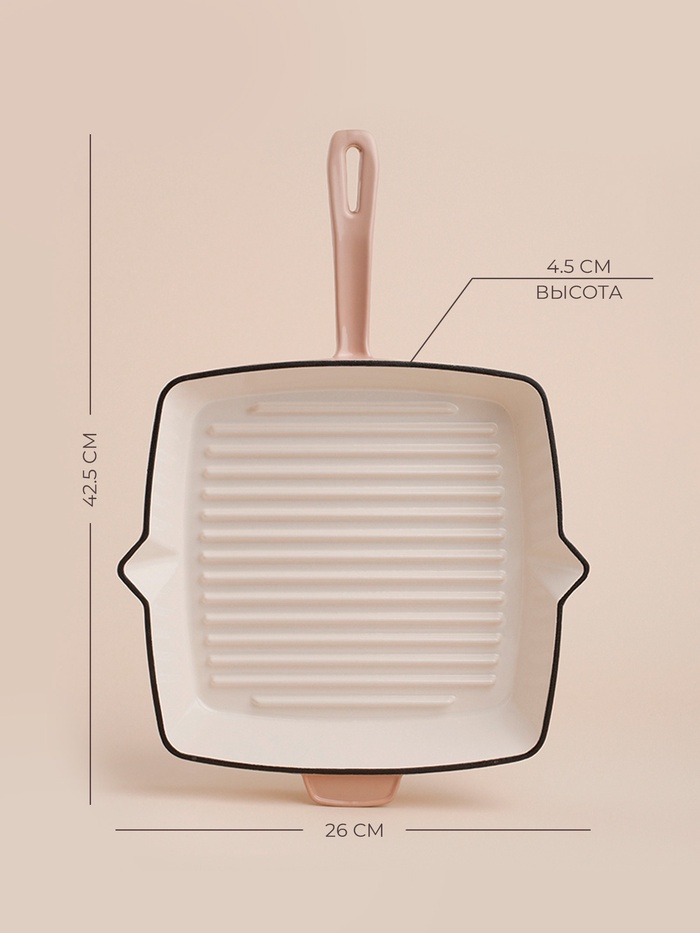 - Стильный дизайн: бежевый цвет и квадратная форма делают сковороду стильным элементом на кухне.
