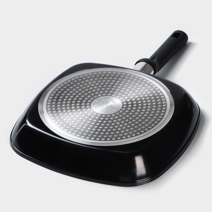 Сковорода-гриль Magistro Warrior, 28×28 см, квадратная, антипригарное покрытие, индукция, кованый алюминий, чёрная