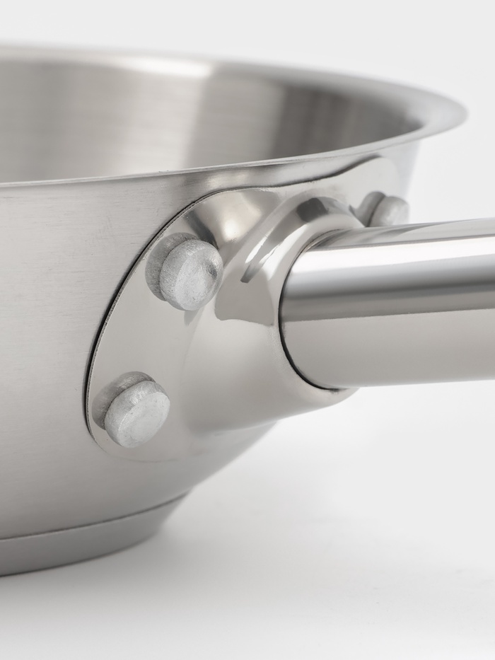 - Легкость в уходе: гладкая поверхность из нержавеющей стали легко очищается, а возможность мытья в посудомоечной машине делает уход за сковородой еще проще.