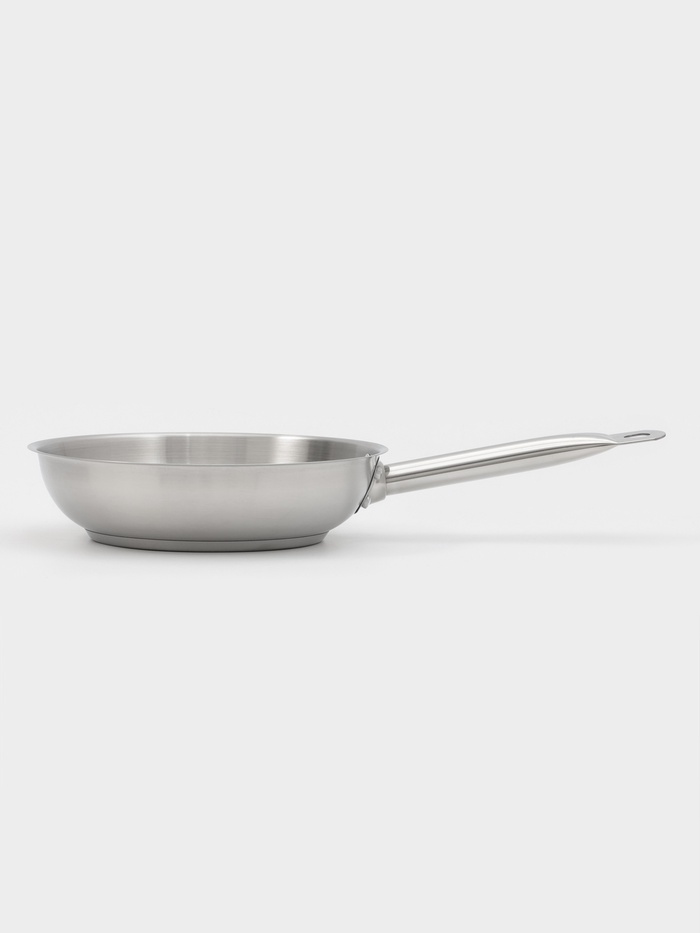 Сковорода из нержавеющей стали - это сочетание стиля, качества и функциональности, которое сделает вашу кухню еще уютнее и удобнее. С диаметром 24 см и высотой стенок 6 см — это идеальный выбор для тех, кто ценит качество и долговечность. С толщиной стенок всего 0,6 мм, она лёгкая, но при этом прочная и устойчивая к деформациям.