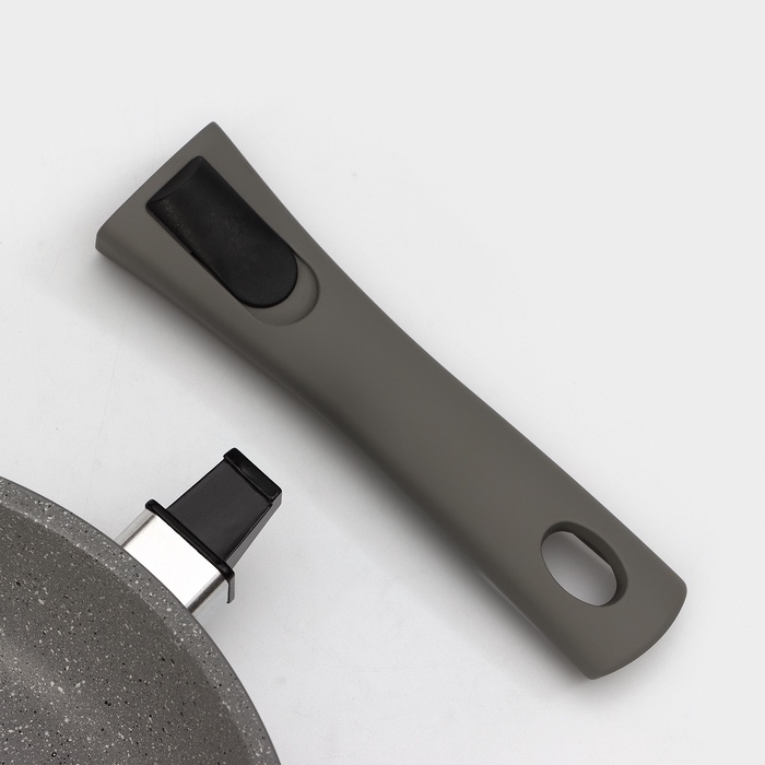 Сковорода KUKMARA, d=24 см, съёмная ручка, стеклянная крышка, антипригарное покрытие, цвет светлый мрамор