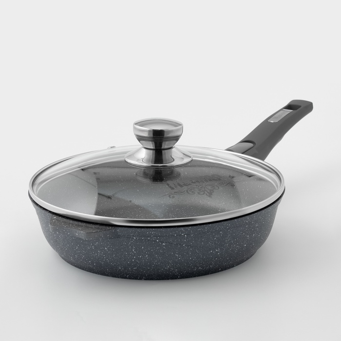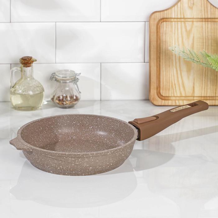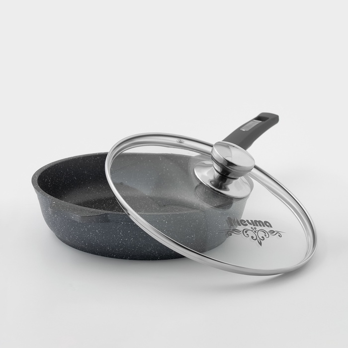 Сковорода Мечта «Гранит», d=24 см, съёмная ручка, антипригарное покрытие, стеклянная крышка, литой алюминий, серая